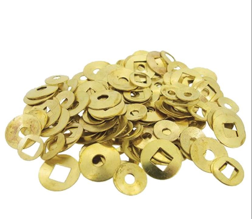 Cosa: Include 100 rondelle in ottone a forma di cupola con foro quadrato e rotondo di varie misure.