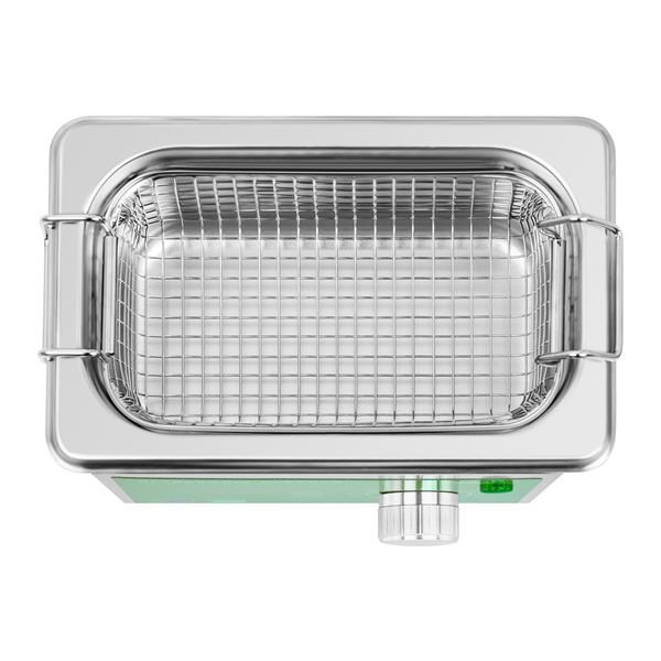 La lavatrice dispone di un solido alloggiamento per il cestello estraibile, il coperchio e la struttura della lavatrice a ultrasuoni sono costruiti in acciaio inossidabile di elevata qualità e facile manutenzione. La vasca di dimensioni 15.00 x 8.60 x 6.50 cm è adatta per la pulizia di piccoli oggetti, la capacità della vasca è di 0,7 litri.